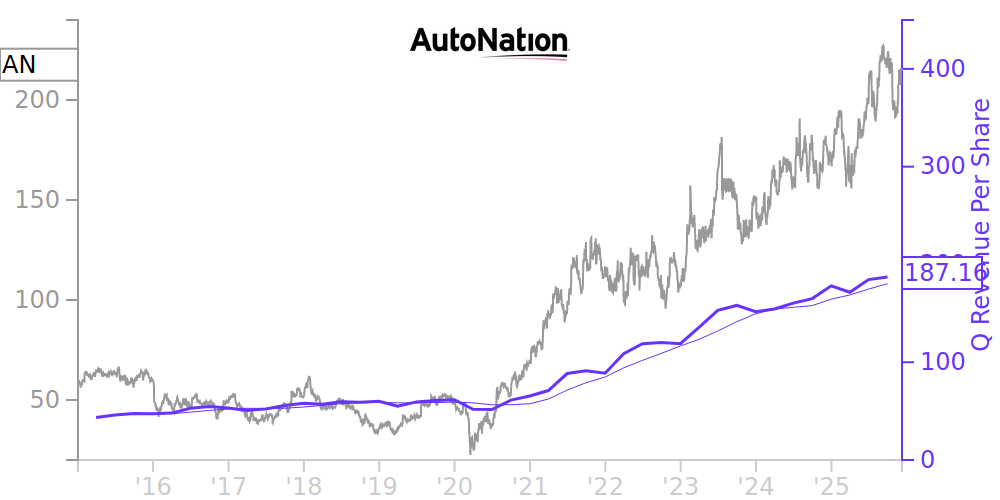 See how revenue, income, cash flow, and balance sheet financials have changed over 59 quarters since 2011. Compare with AN stock chart to see long term trends.