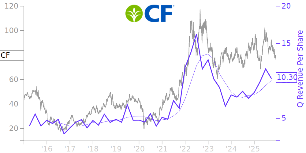 See how revenue, income, cash flow, and balance sheet financials have changed over 63 quarters since 2010. Compare with CF stock chart to see long term trends.