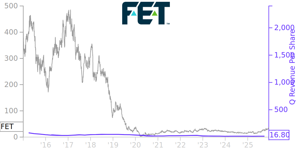 See how revenue, income, cash flow, and balance sheet financials have changed over 55 quarters since 2012. Compare with FET stock chart to see long term trends.
