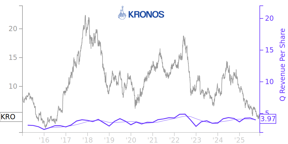 See how revenue, income, cash flow, and balance sheet financials have changed over 55 quarters since 2012. Compare with KRO stock chart to see long term trends.