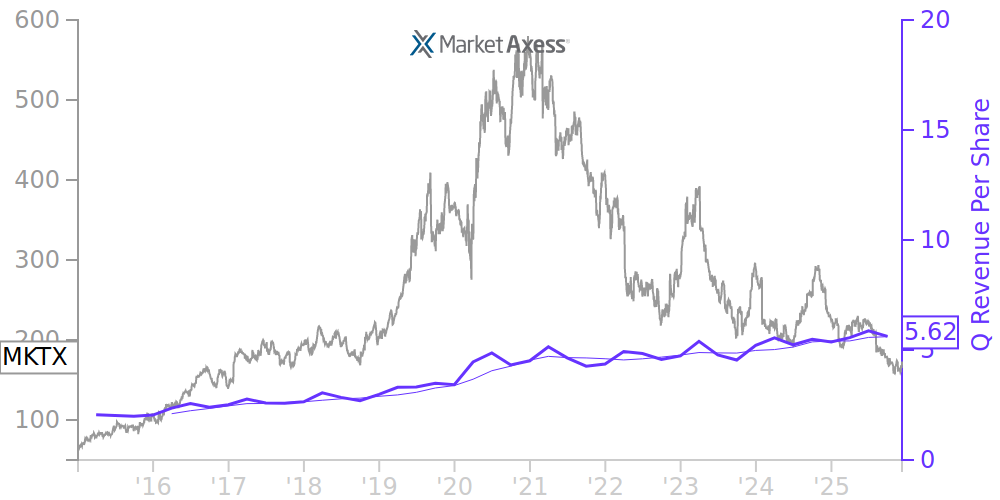 See how revenue, income, cash flow, and balance sheet financials have changed over 55 quarters since 2012. Compare with MKTX stock chart to see long term trends.