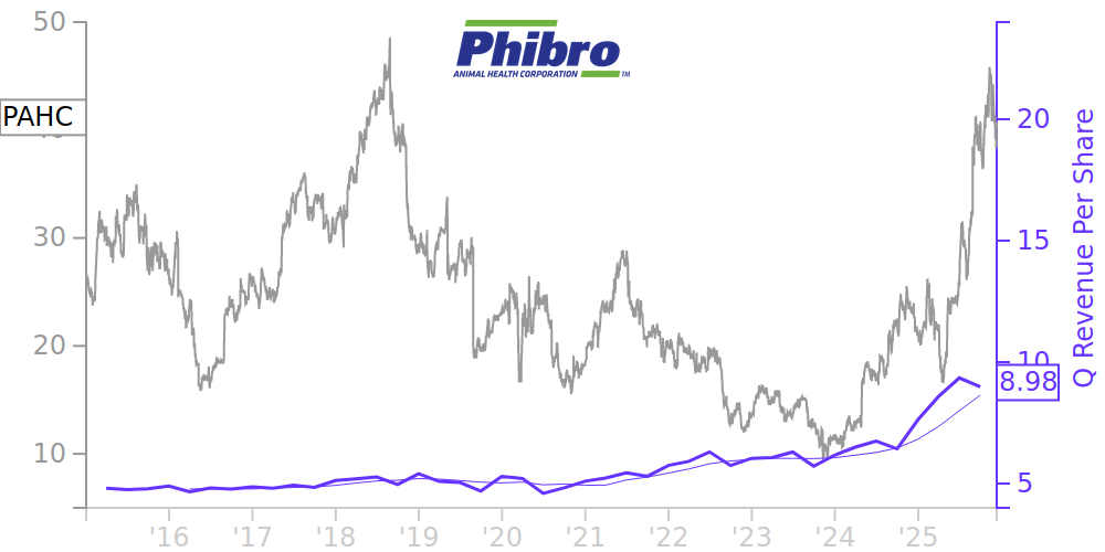 See how revenue, income, cash flow, and balance sheet financials have changed over 45 quarters since 2014. Compare with PAHC stock chart to see long term trends.