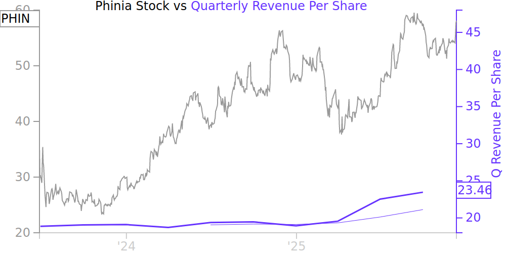 See how revenue, income, cash flow, and balance sheet financials have changed over 10 quarters since 2023. Compare with PHIN stock chart to see long term trends.