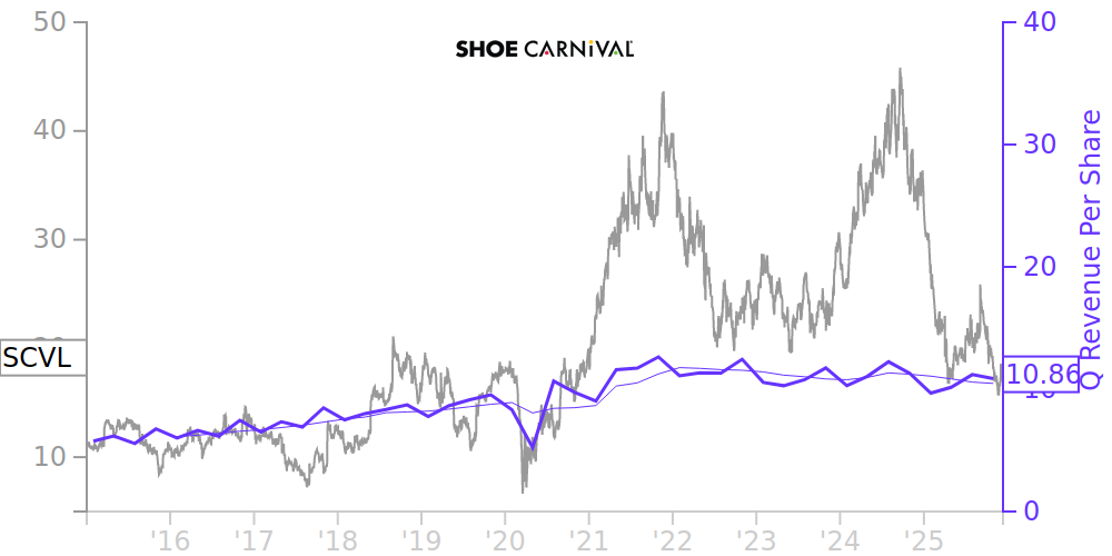 See how revenue, income, cash flow, and balance sheet financials have changed over 51 quarters since 2013. Compare with SCVL stock chart to see long term trends.